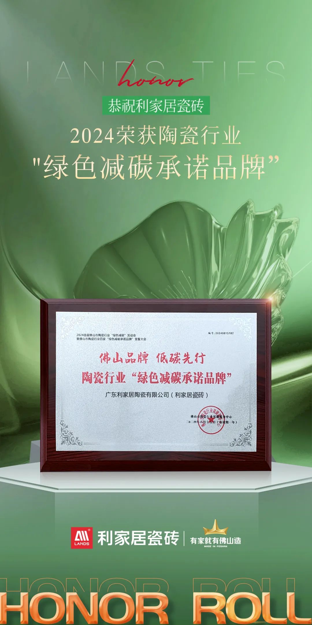 利家居瓷磚憑借卓越的產(chǎn)品質(zhì)量、強(qiáng)大的品牌影響力以及綠色生產(chǎn)力,榮獲陶業(yè)“綠色減碳承諾品牌”稱號(hào),樹(shù)立行業(yè)減碳標(biāo)桿,共同推動(dòng)行業(yè)綠色轉(zhuǎn)型和健康可持續(xù)發(fā)展。