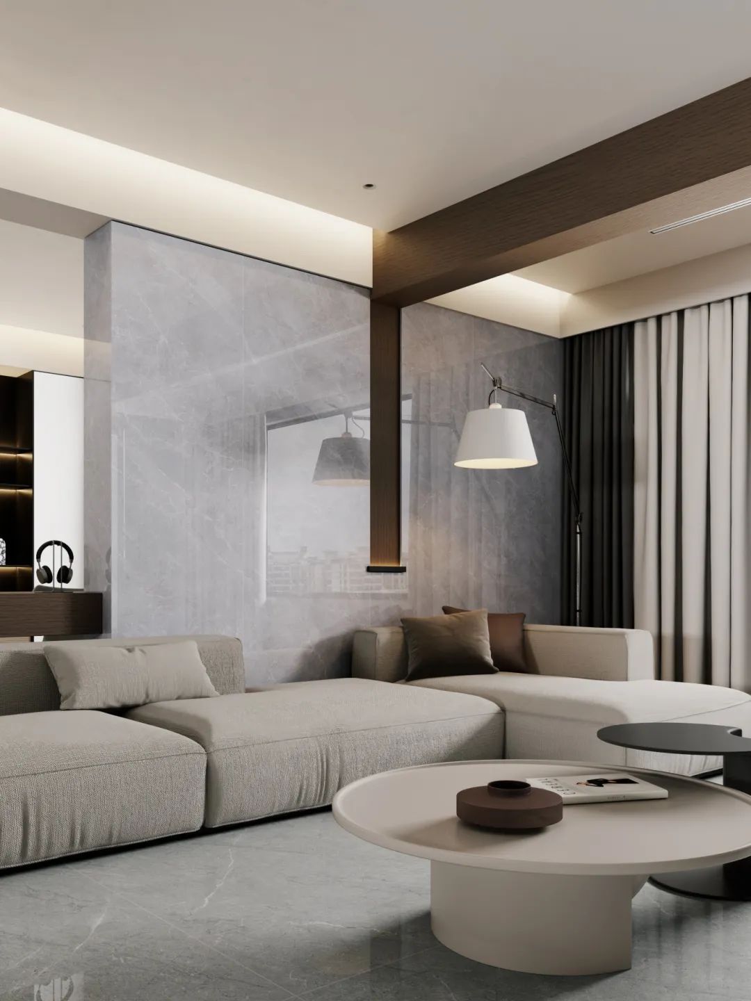 淺灰色紋理自帶柔和的自然色調(diào),溫暖而寧靜,細膩的紋理仿佛在微微流動著,透露著委婉含蓄的美感,呈現(xiàn)出一種親膚柔潤的視覺效果。